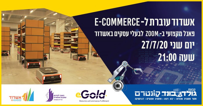 האגף לקידום עסקים ותעשייה בעיריית אשדוד והמרכז הרובוטי eGold מבית קבוצת GoldBond יקיימו מפגש אונליין לעידוד עסקים מקומיים בעיר לפתוח חנות אינטרנטית ולעבור למסחר המקוון. המפגש ייערך בהשתתפותם של שרון מרק, סגנית ראש עיריית אשדוד והממונה על קידום העסקים והתעשייה בעיר, יותם בן ארי, מנהל הפעילות של eGold, ותימור גורדון, יועץ ומלווה חברות ויזמים בתחום ה – eCommerce.