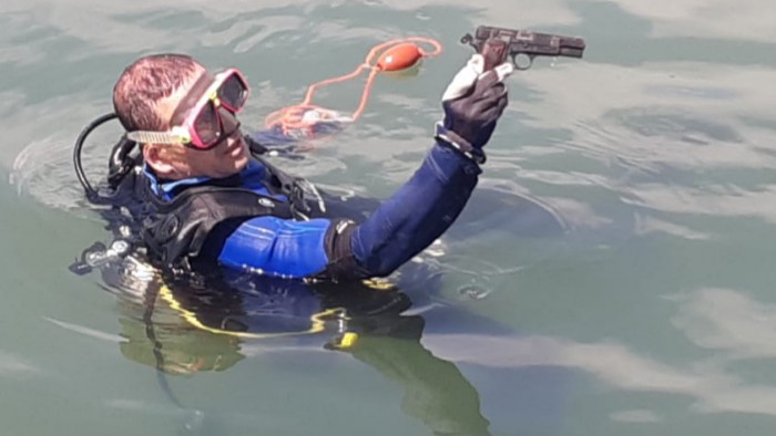 אחד מהחשודים ניסה להימלט מהשוטרים והשליך את הנשק בו ירו קודם לכן, אל הים באזור בו עוגנות סירות, כל זאת בניסיון להעלים ראיות. צוות צוללנים של יחידת החילוץ של משטרת ישראל הוזעק למקום ותוך ביצוע פעולות מקצועיות ומורכבות ביותר הצליח למצוא את האקדח בקרקעית הים.