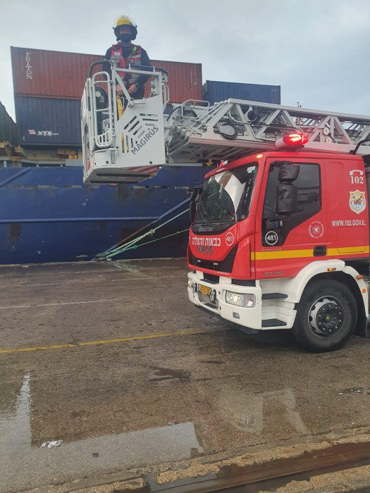 לוחמי האש של תחנת אשדוד קיבלו קריאה על עובד נמל שלכוד במעלית כלוב בגובה 20 מטר מעל הים .