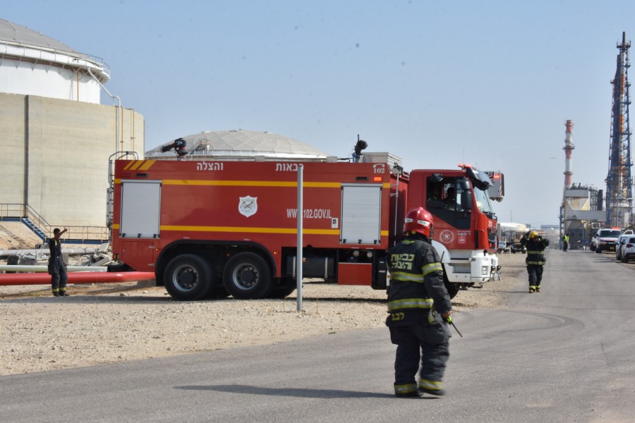 תחנת כיבוי אש אשדוד ערכה היום תרגיל בפז בתי זיקוק אשדוד.