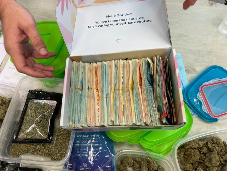 עם פשיטת הבלשים, נתפסו בביתם של הזוג (31) כ 1.5 ק"ג סמים מסוג קנאביס שבחלקם היו מחולקים לשקיות חלוקה המשמשות לסחר, שקיות חלוקה ריקות, מדבקות ממותגות, ובנוסף נתפסו למעלה מ 125 אלף ש"ח, שלפי החשד מקורם בסחר בסמים.