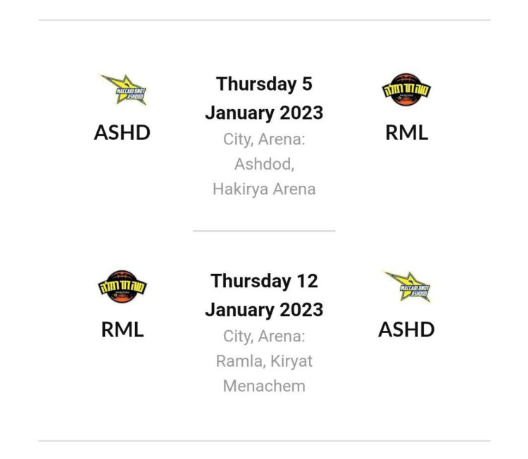 על פי ההגרלה המשחק הראשון ייערך ב-5 בינואר באשדוד באולם הקריה. משחק הגומלין ייערך ברמלה ב-12 בינואר. עכשיו השתיים נאבקות לא רק על התארים בישראל, אלא גם אירופה. מי אמר "חורף חם"?.