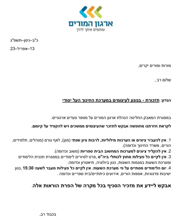 מסתבר כי ארגוני המורים שלא הגיעו להסכם שכר חדש עם האוצר, וטוענים כי אין התייחסות לבקשתם. לכן הארגון הוציא היום, חמישי, הודעה (ראו תמונה) למורי התיכונים בהם הם מורים כיצד להתנהל, או במקרה הזה לא להתנהל. בימים האלה תלמידי התיכונים בתקופת הבגרויות.