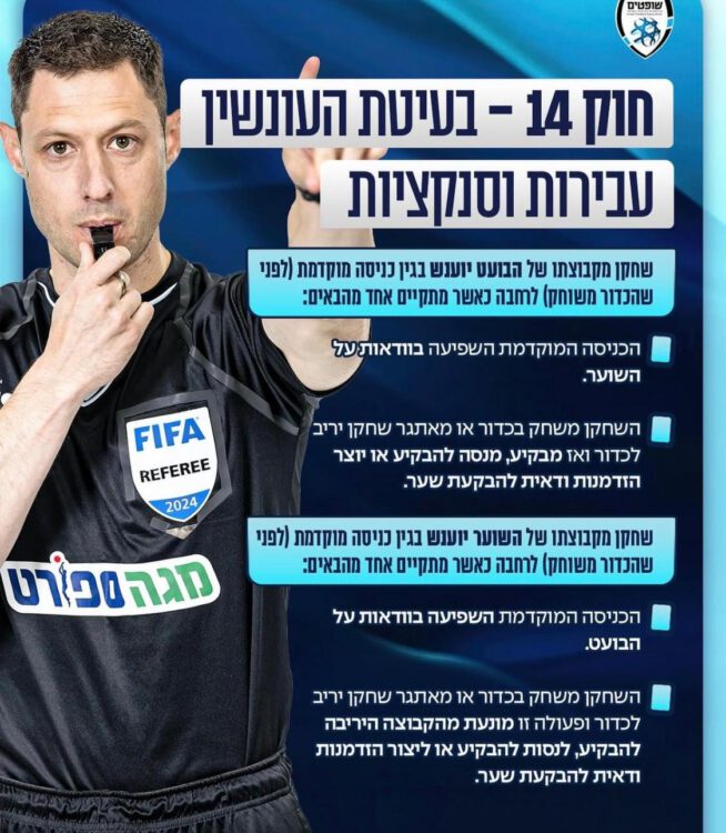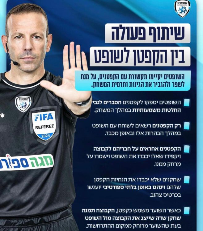 איגוד השופטים הודיע היום, שני, על שינויי חוקה חשובים לקראת עונת המשחקים 24/25. אגב לקפטנים של הקבוצות תהיה הרבה יותר סמכות בכל הקשור לקשר עם השופט.