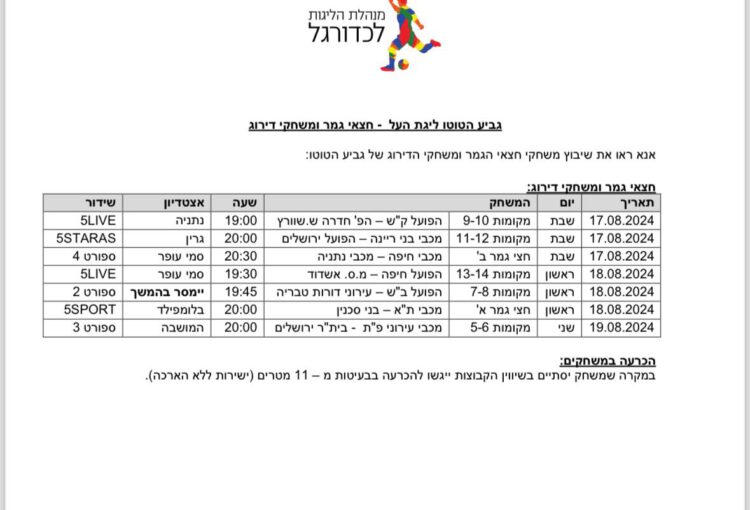 מי שתארח את המשחק היא הפועל חיפה והוא ייערך ביום ראשון בשעה 19.30 באצטדיון 'סמי עופר'. יתכן כי עד ראשון יגיעו שחקנים שהצוות המקצועי רוצה לראות, וזו תהיה בהחלט הזדמנות להתרשם.