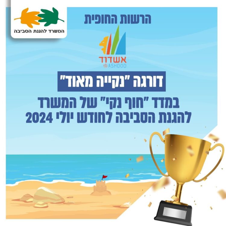 אשדוד דורגה במדד "חוף נקי" של המשרד להגנת הסביבה ברשימת הרשויות הנקיות ביותר בישראל, עם ציון ממוצע "נקי מאוד".
