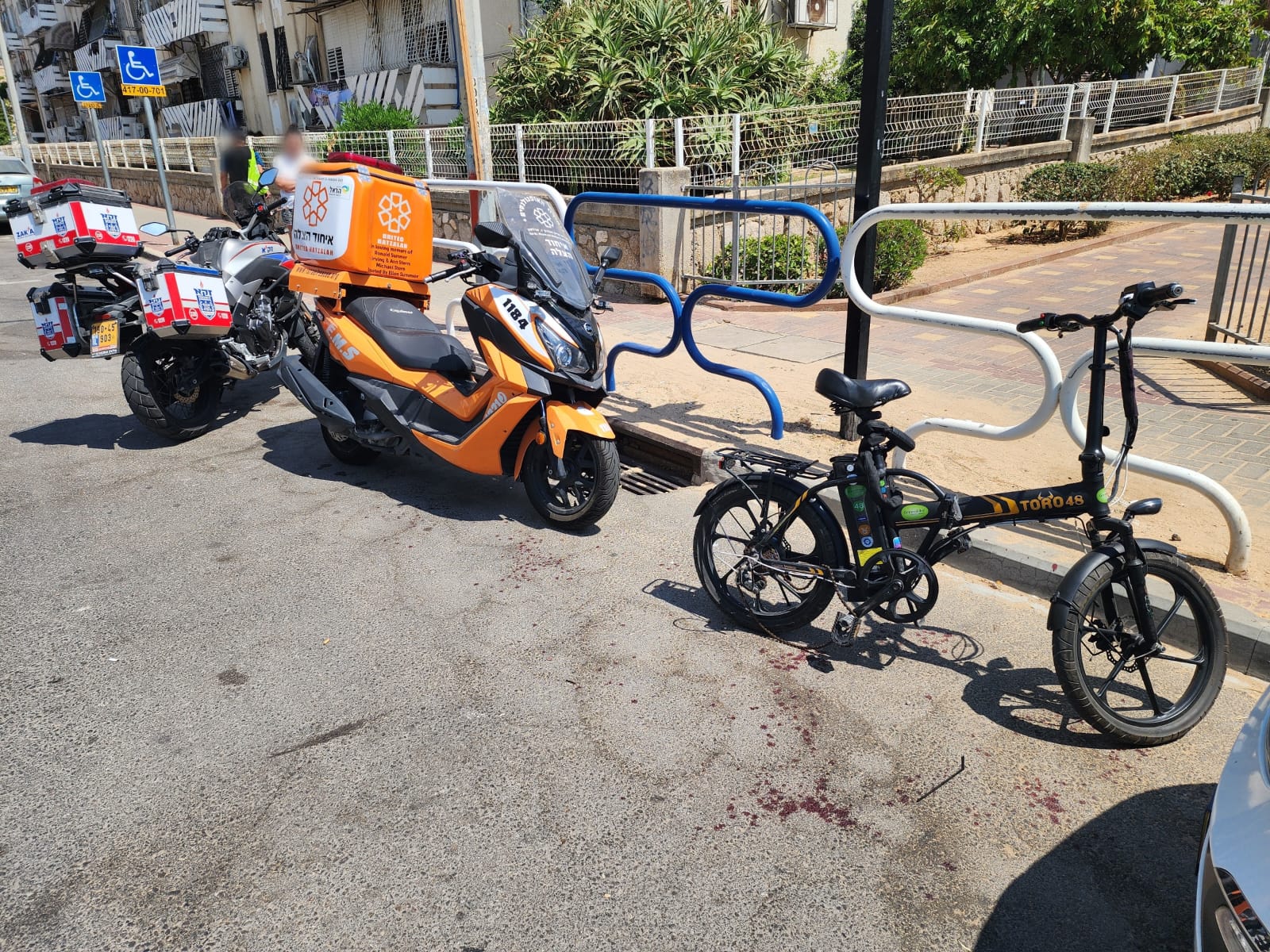 יוסף ברנשטיין חובש באיחוד הצלה מסר: "מדובר ברוכב אופניים חשמליים כבן 60 שלדברי עוברי אורח נפגע מרכב פרטי, בסיוע חובשים נוספים הענקנו לו טיפול רפואי ראושני והוא פונה בניידת טיפול נמרץ כשמצבו מוגדר בינוני".