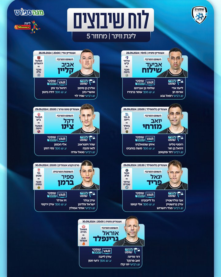 המשחק ייערך ביום שני (20.00, נתניה). עידן לייבה יהיה השופט המרכז ב-VAR.