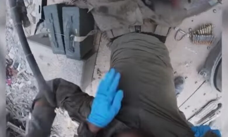 תיעוד דרמטי מג׳באליה בצפון הרצועה: לוחם שנכרתה ידו כתוצאה מפגיעת נ״ט מקבל טיפול רפואי מציל חיים על הנגמ״ש הרפואי בדרך למסוק.