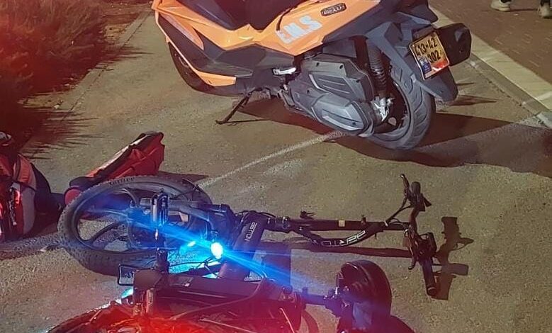תאונה קשה הערב בעיר. רוכב אופניים חשמליים בן 18 במצב בינוני לאחר שנפגע מרוכב אופנוע בסמוך לצומת רובע ח