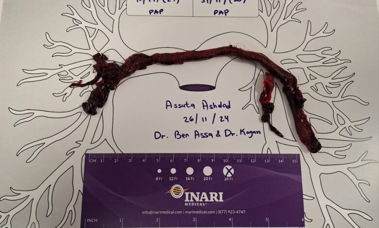 מטופלת בת 60 ניצלה באסותא לאחר שנמצא קריש דם ענק בגדול 20 סמ שנשאב מהריאות בניתוח חירום