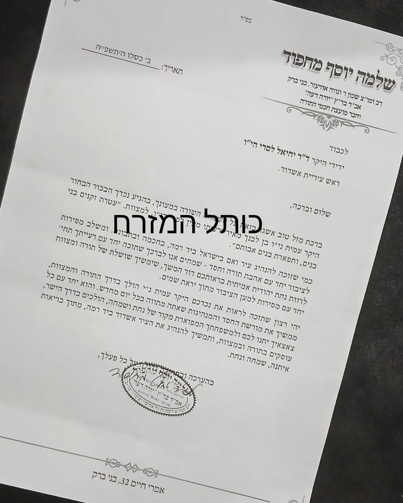 כך כינה חבר מועצת חכמי התורה את ראש העיר לסרי לרגל בר המצווה לנכדו