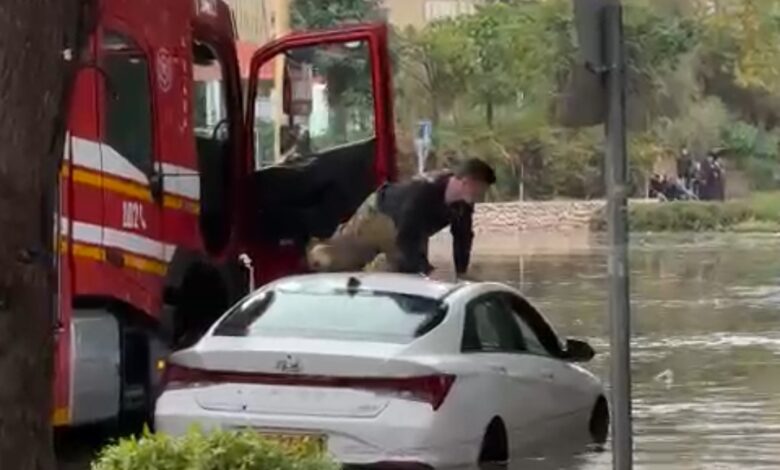 צפו בתיעוד: כוחות החירום של כבאות והצלה מחלצים אזרח ממכונית בעיר