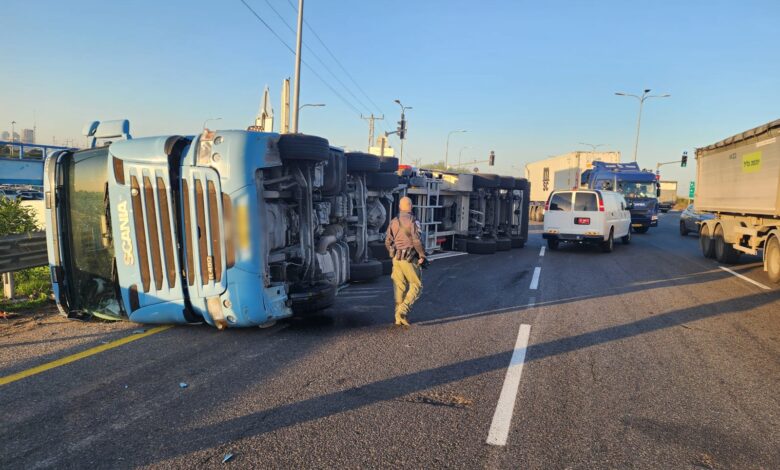 נהג בן 40 נפצע בתאונה עצמית בה משאיתו התהפכה