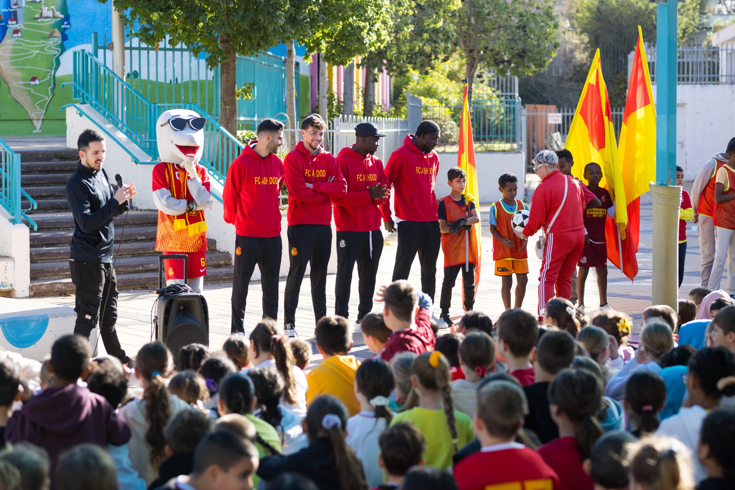 בתחילת המפגש רועי לוי, תום כרמלי, אבנעזר ממאטה ועמנואל אג'יי ערכו שיחה קצרה עם התלמידים, לאחר מכן הקדישו זמן לתמונות וחתימות ובהמשך עברו למגרש לשחק עם התלמידים הנרגשים.