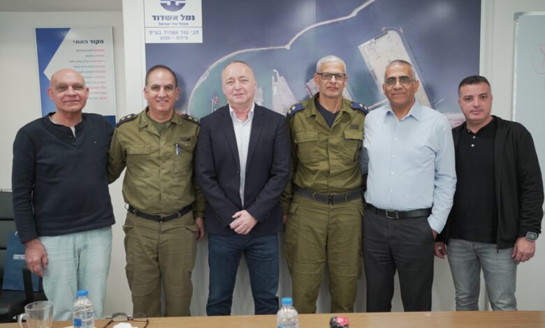 בתמונה הראשית: מימין לשמאל : יניב בן שבת רמ״ד תכנון, ניסן לוי, מנכ"ל נמל אשדוד, סא"ל במיל' אילן מדמון, שאול שניידר יו"ר דירקטוריון נמל אשדוד, אל"מ במיל' יוסי משיטה, ברנארד בן ישי מנב״ט הנמל, צילום פבל טולצ'ינסקי