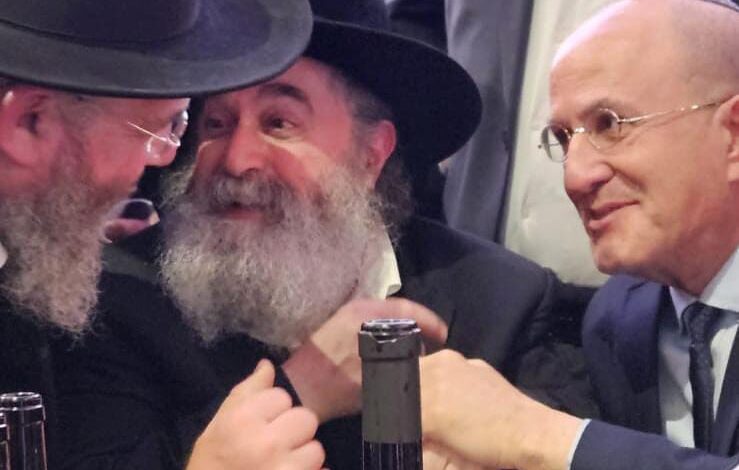 במרכז שולחן הכבוד נראה בנש"ק האדמו"ר הרה"צ רבי יקותיאל אבוחצירא שליט"א. כשלצידו שורה של רבנים, ראשי ישיבות, ראש העיר ד"ר יחיאל לסרי ולצידו נציגם של בני התורה הרב חיים אמסילי חבר מועצת העיר מסיעת ש"ס והממונה לאגף חינוך תורני והרב עובדיה דהן יו"ר המועצה הדתית.