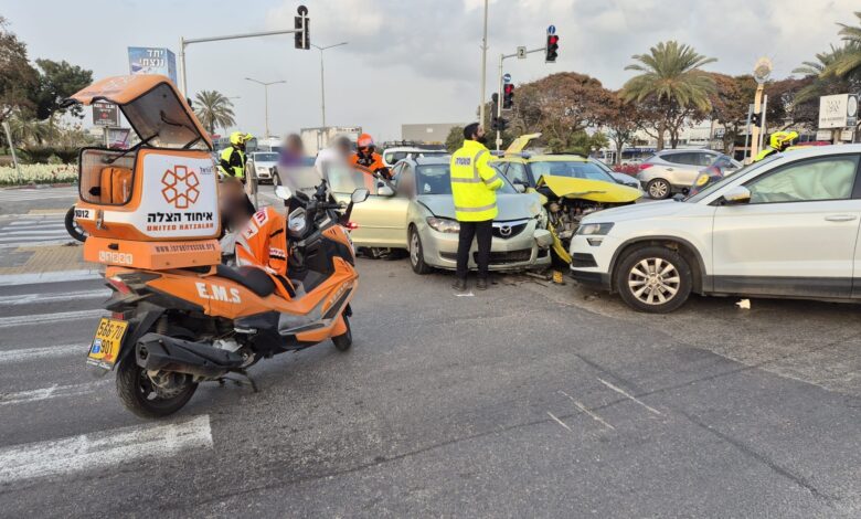 חמישה נפגעים בתאונה ברחוב בני ברית פינת הבושם באשדוד.