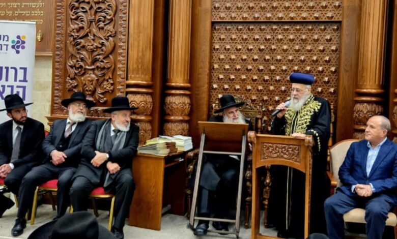 מעמד הענקת "תעודות הוראה" לבוגרי הקורס לרבנים שע"י מכון "דורות" המרכז לפוריות רפואה והלכה בכולל להוראה "תורה לשמה" בראשותו של הרב מאיר אבוחצירא במעמד הראשון לציון הרב יצחק יוסף חבר מועצת חכמי התורה