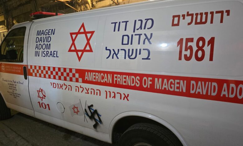 מזעזע: צלבי קרס צוירו על דגלי ישראל שעל אמבולנסים של מד"א במהלך טיפול בחולה