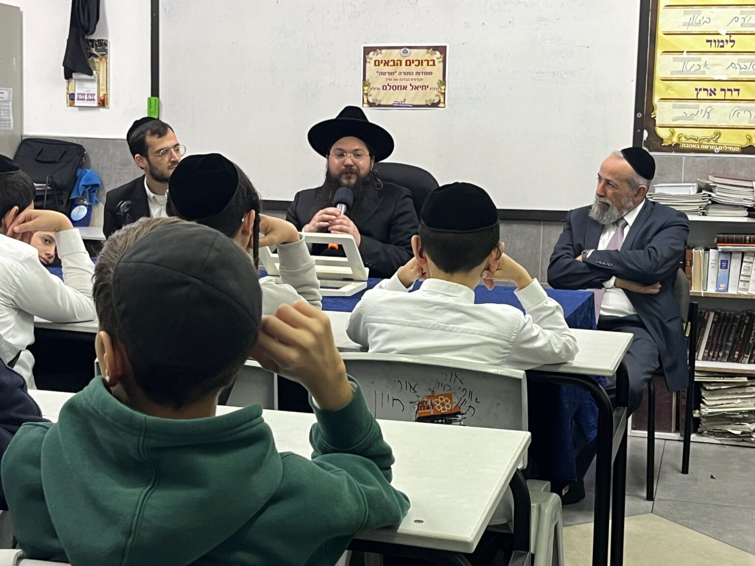 עם הגעתו לתלמוד תורה, קיבל את פניו מנכ"ל המוסדות הרב יעקב קריספין בברכת ברוכים הבאים שבדרכו סיפר לו על מבצעי העידוד לילדים בימים אלו המתקיימים בין כותלי התלמוד תורה.