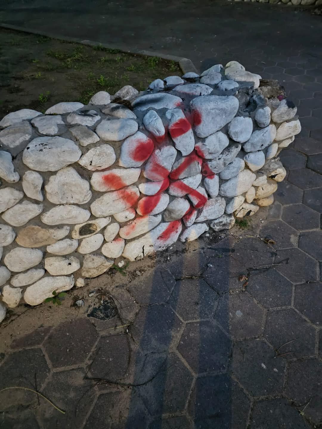 הבוקר (שני), תושבי שדרות עוזיהו ברובע ג' נחשפו למראה מזעזע – צלב קרס שרוסס בלב העיר.