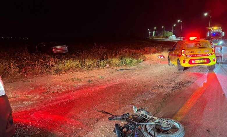 במהלך הלילה, התקבל דיווח במוקד 101 של מד"א במרחב לכיש על רוכב אופניים חשמליים שנפגע מרכב בכביש 3711, סמוך לצומת אמונים.
