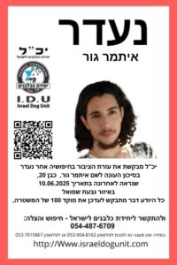 יכ"ל מבקשת את עזרת הציבור בחיפושיה אחר נעדר בסיכון, בשם איתמר גור, כבן 20, שנראה לאחרונה בתאריך 10.06.2025 באזור גבעת שמואל.