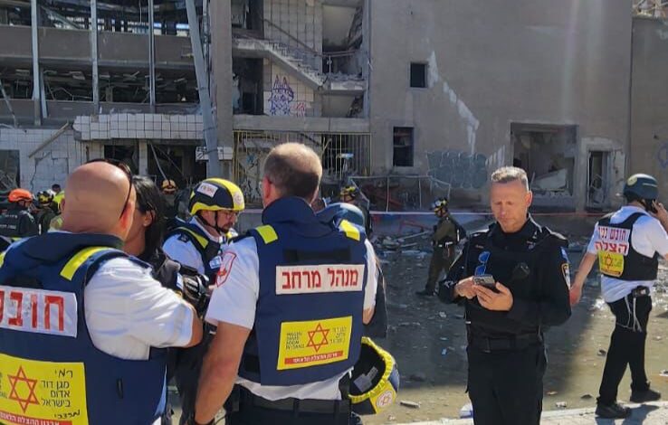 "כשהגעתי לרחוב ראיתי הרס רב בבניין, והחניה הסמוכה אליו נפגעה מהטיל, כמו גם בניינים סמוכים. מספר פצועים היו ברחוב כשהם בהכרה וסובלים מפציעות מדממות מרסיסים וחבלות בגופם. יחד עם צוותים נוספים של מד"א הענקנו להם טיפול רפואי ופינינו אותם לבתי החולים. כוחות גדולים של מד"א עדיין בזירה ופועלים יחד עם כוחות החילוץ על מנת לוודא שאין נפגעים נוספים ולהעניק טיפול רפואי במידת הצורך".