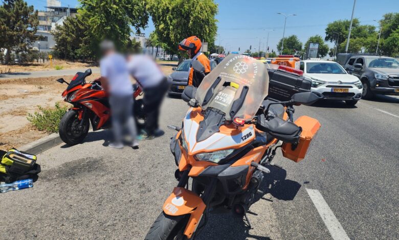 רוכב אופנוע בן 25 נפגע מרכב פרטי בעיר. מצבו קל