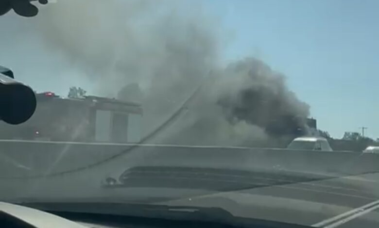 בעקבות משאית שעלתה באש – עומס תנועה בסמוך ליציאה הצפונית