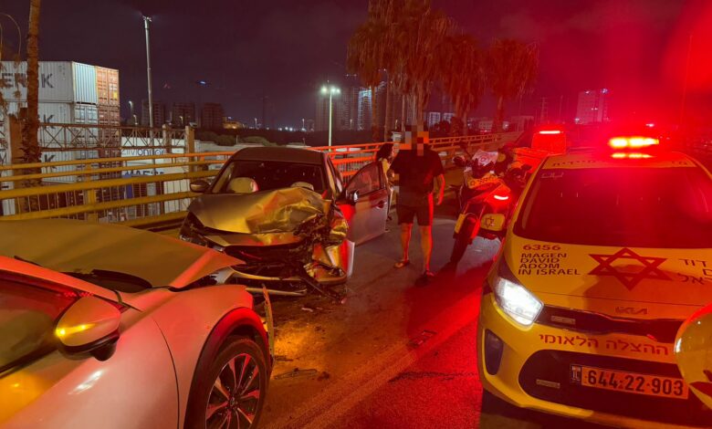 6 פצועים בינוני וקל בתאונת דרכים חזיתית באשדוד לפנות בוקר. הפצועים פונו לבית החולים אסותא להמשך טיפול רפואי
