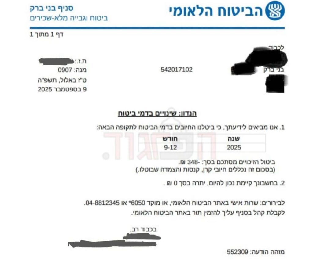 ההודעה של הביטוח הלאומי בעקבות הפרסום הנ"ל
