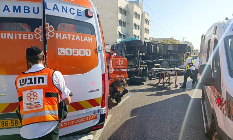 נגמר בנס: פצועים בהתהפכות משאית בעיר