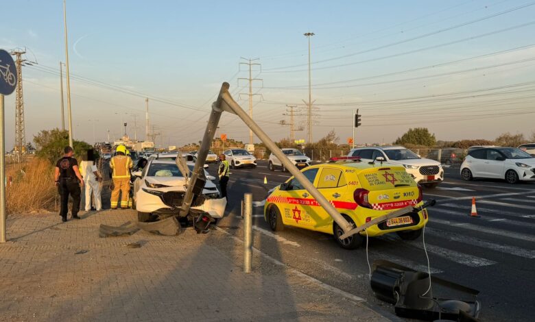 תאונה סמוך לאשדוד: רכב פגע ברמזור שנפל ופצע הולך רגל