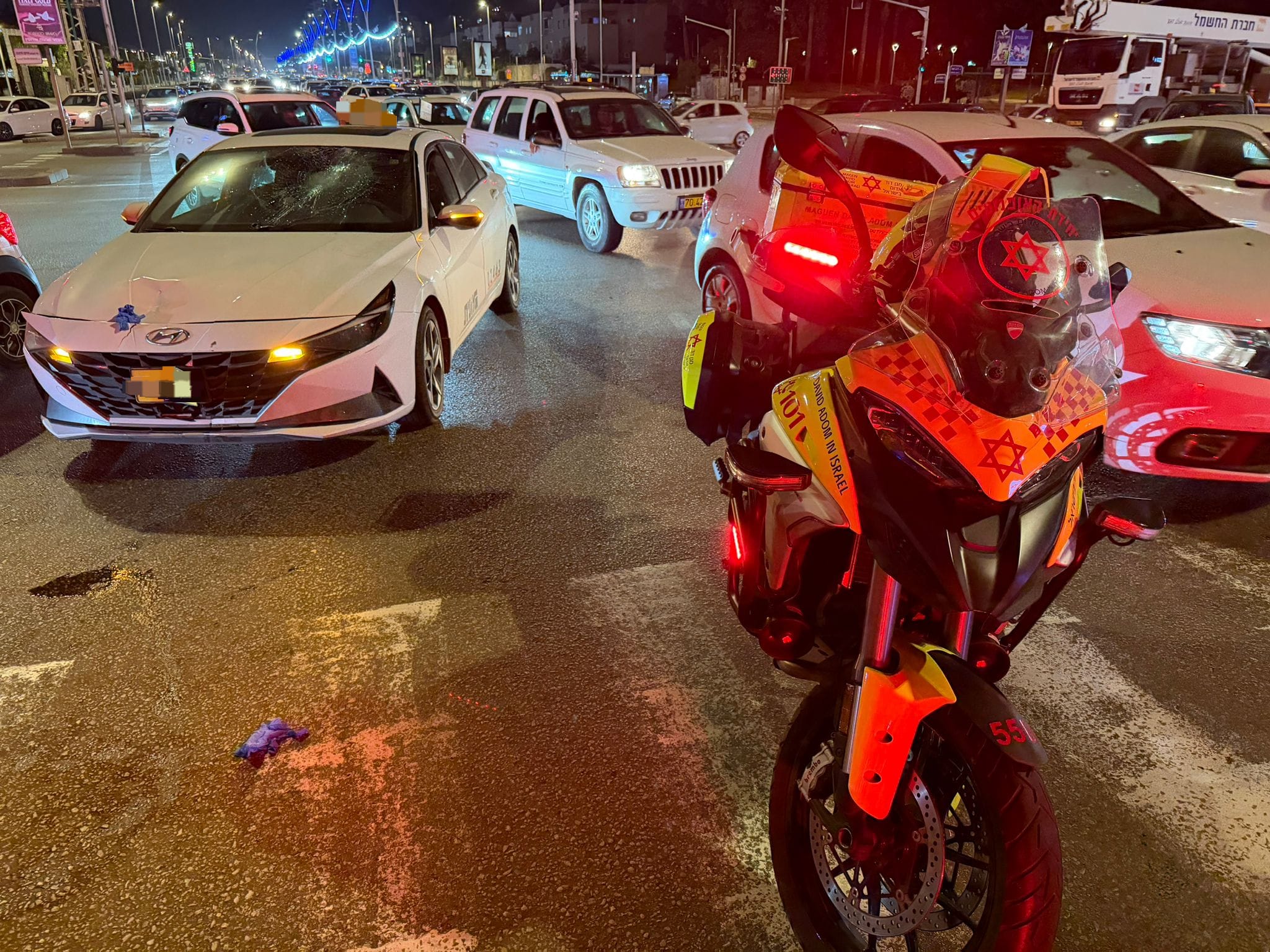 פרמדיק מד״א תכלת רובינזון וחובשי מד״א שמחה חסיד ויהודה שילר סיפרו כי רוכב האופניים נמצא כשהוא פצוע קשה לאחר שנפגע מרכב פרטי. לדבריהם הוענק לו טיפול רפואי מציל חיים בשטח והוא פונה לבית החולים כשהוא במצב יציב.