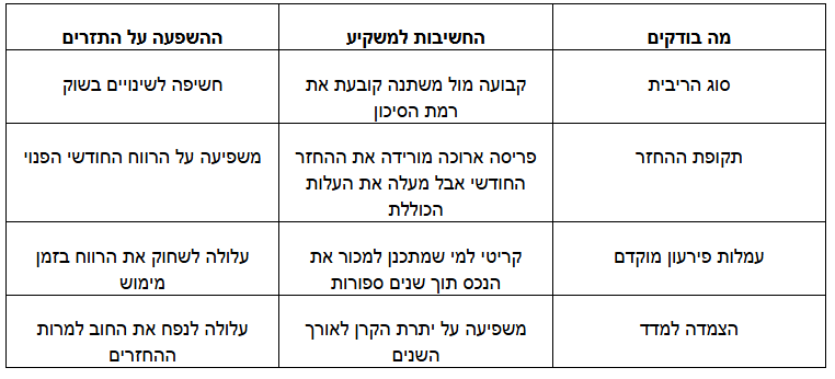 א. בצעו סימולציה שבודקת האם תוכלו לעמוד בהחזרים גם במקרה של עליית ריבית באחוז אחד או שניים.