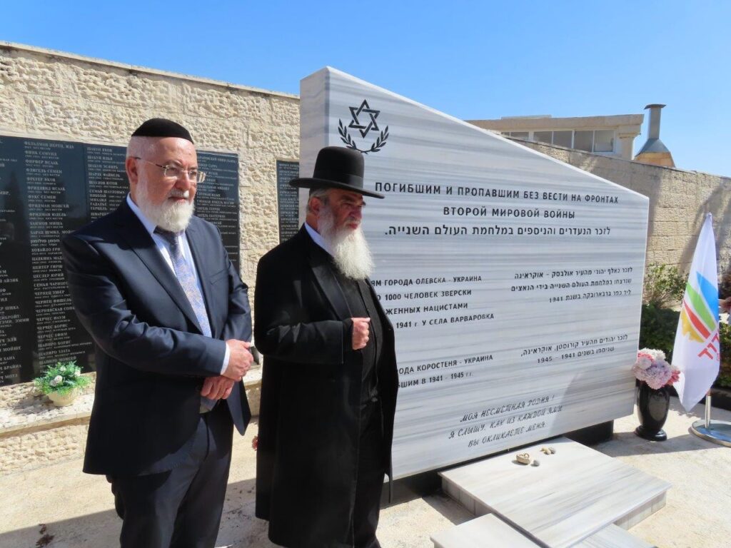 לסיום, נכבדי הציבור הניחו זרי פרחים לזכרם בסמוך לאנדרטאות עליהם חרוטים שמותם של הנעדרים והנספים במלחמת העולם השניה באוקראינה הקהילות ושל יהודים שלחמו ונפלו בתקופת השואה.