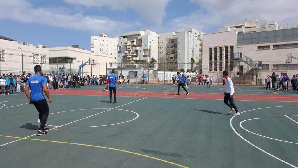 השחקנים במשחק הראווה עם תלמידי מקיף י'.