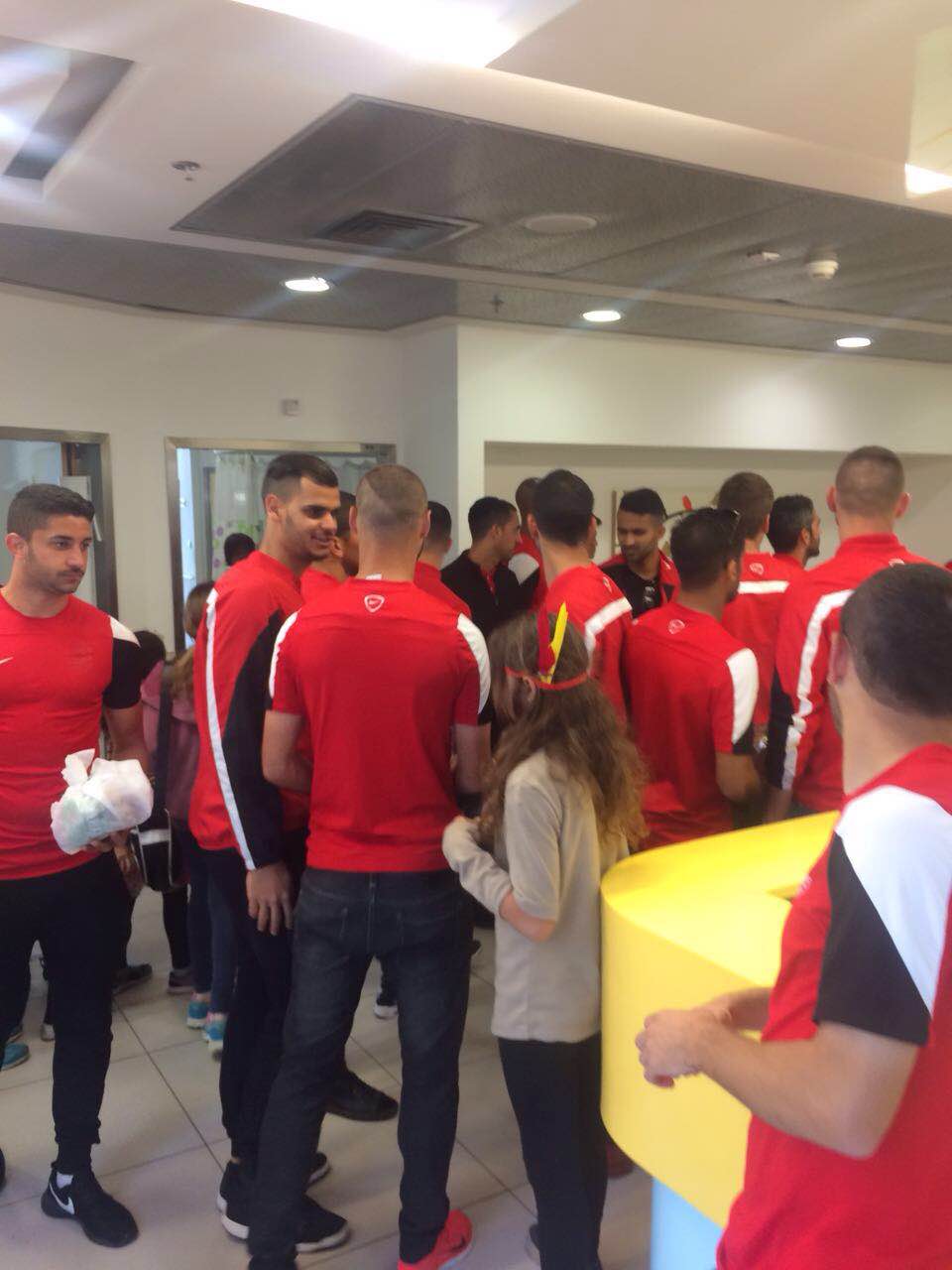 שחקני ואנשי מ.ס אשדוד חילקו משלוחי מנות במחלקת הילדים בביה"ח קפלן