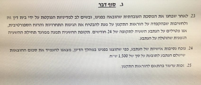 היום, חמישי כאמור התקבלה ההחלטה של שלושת דייני ועדת המשמעת, ד"ר איסר ברגר, ד"ר אלי פלדינגר ואורית ליטני: בין הייתר נכתב בהחלטה: "לאחר שבחנו את המסכת העובדתית שהובאה בפנינו, ובשים לב למדיניות הננקטת על ידי בית דין זה ולחשיבות שבהקפדה על הוראות התקנון על מנת להבטיח את הגינות התחרויות והרוח הספורטיבית, אנו מטילים על הנתבע השעיה לתקופה של 24 חודשים. תקופת ההשעיה תמנה ממועד תחילת ההשעיה הזמנית שהוטלה על הנתבע".