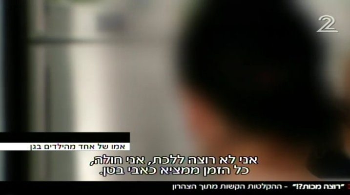 אחת האימהות גילתה בתחקיר כי הילדה שלה סיפרה "כי עליהם להיות בשקט בזמן האוכל ולילדים שבכל זאת מדברים אומרים שידביקו להם את השפתיים עם דבק או שישימו להם סבון מגעיל בתוך הפה". ההתנהגות של הילדים השתנתה מהקצה לקצה, הם פורצים בצעקות ובוכים וממציאים כאבי בטן בכדי לא להיע לשם.