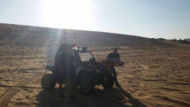 כוחות של מד"א שהגיעו לזירה פינו שני פצועים לבית החולים, עוד קודם לכן רכב השטח של איחוד הצלה פינה אותם אל מעבר לדיונה.
