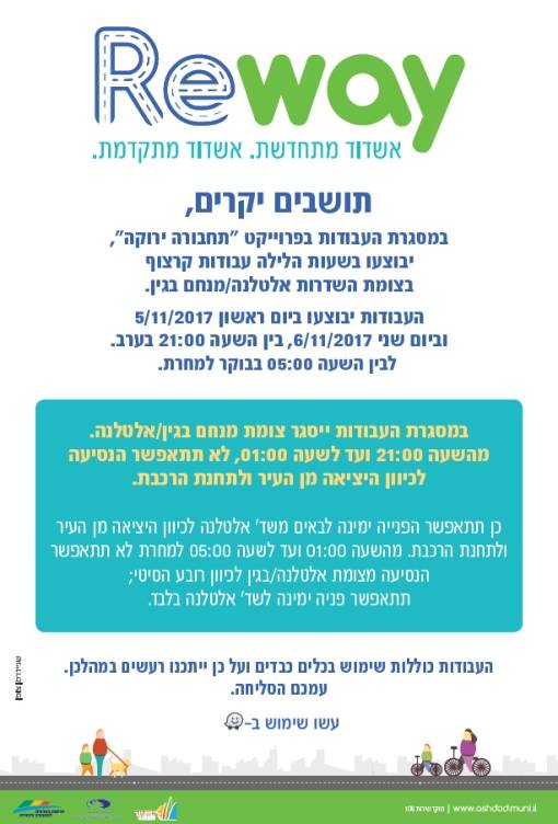 העבודות על פרוייקט התחבורה ממשיכות וגם היום יבוצעו עבודות והפעם ייחסמו לתנועה צומת מנחם בגין/ אלטלנה לכיוון היציאה מהעיר – העבודות יתחילו היום ומחר מהשעה 21:00 ועד השעה 05:00 בבוקר