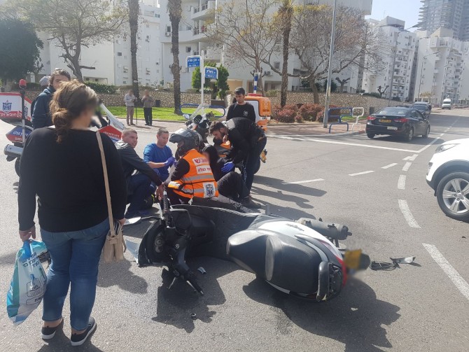 התאונה ברחוב בן עזרא באשדוד. מצבו מוגדר קל. חובשי איחוד הצלה העניקו לא טיפול ראשוני.