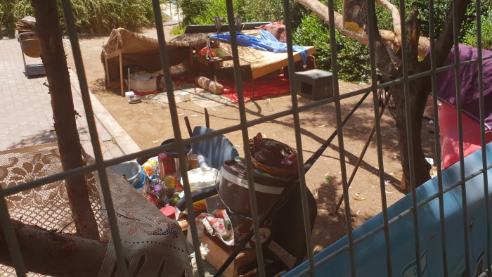 שעה קלה לאחר השריפה הגענו למקום על מנת לראות את הנזק שנוצר, לנגד עניינו התגלה מחזה זוועה, הבניין המטונף פרוץ לכל דורש ועל פי דיירי הוילות הסמוכות לבניין המקום משמש מדי ערב מחסה לפליטים מסודן ושוהים בלתי חוקיים תושבי השטחים שהפכו את השטח לבית פרטי עם חצר בו השתמשו לבניית אוהלים נמוכים ונדנדות להעברת זמנם.