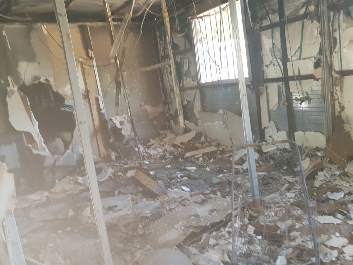 הסירחון בתוך הבניין היה עצום, וההרס והחורבן נגלו בכל קומה בו, כאשר השריפה שהתרחשה היום במקום הייתה במספר מוקדים – בקומה העליונה ובקראוונים הסמוכים לבניין הנמצאים בגינה של בניין המשטרה, התושבים טוענים כי לדעתם השריפה היום התרחשה כתוצאה מהצתה מכוונת.