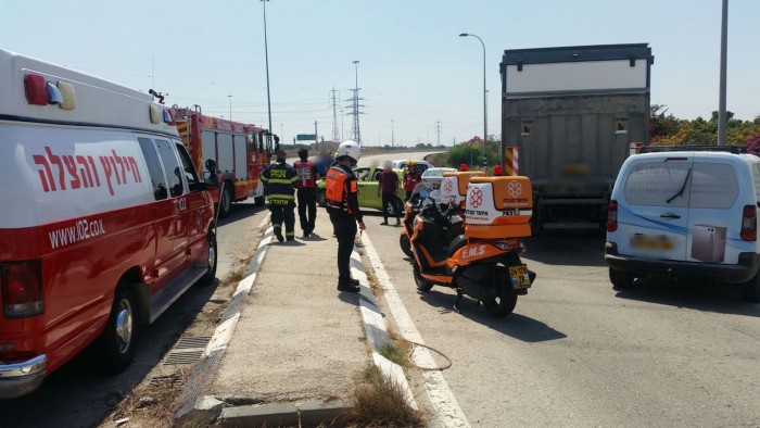 פצוע בתאונה בין משאית ושלושה רכבים
