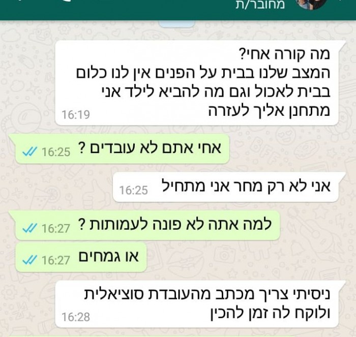 לתוך זה יש לזכור כי יש גם ילד בן שנתיים בתמונה. בגלל המצב הילד כמעט ללא אוכל מעבר למה שהוא שהוא זקוק וגם פרטי לבוש חסרים לו, שלא לדבר על דברים שילדים בני גילו מקבלים, כמו חטיפים וצעצועים. למעוניינים לעזור – 0503261385