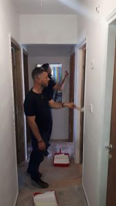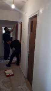 פקחי עיריית אשדוד שניר נידם, אבי פלדמן,אבישי סבח ועידן ששונקר משפצים גם ברגעים אלה את ביתו של קשיש כבן 80 ברוע יג' שחיי לבדו בבית .